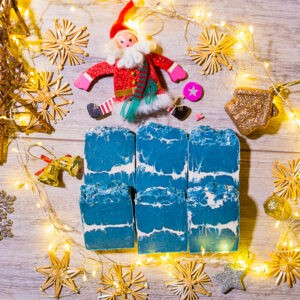 Аромат. Вот здесь пришлось поломать голову, запах сосны и мандаринов-это Наш новый год, а совсем не лапландский, а как передать эту колючую морозную льдистость? В общем, я ориентировалась на собственное восприятие и мыло в итоге пахнет Dolce & G L’Imperatrice, вписался этот аромат, как по мне, идеально. Но судить, конечно, вам. По тактильным ощущениям- мыло очень нежное, с прекрасной пеной, праздничное мыло, как и замышлялось.