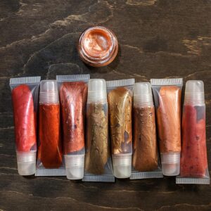 Замечательные блески для губ: нелипкие, смягчающие, ухаживающие, да еще и невероятно красивые. Все они ароматизированы ароматами, предназначенными специально для губ, то есть их можно безбоязненно слизывать. В составе основа, мики и красители с сайта ТКБ, разрешенные к использованию именно на такой деликатной части нашего лица. Блески идут под такими названиями: Кокетка, Ягодный, Огонь, Охра, Секси беж, Карамель, Австралийский коралл, Фламенко, Экзотик. Итак, в круглой французской баночке сверху блеск для девочек — Кокетка, он практически не имеет цвета, только красиво блестит и пахнет вкусно персиком.