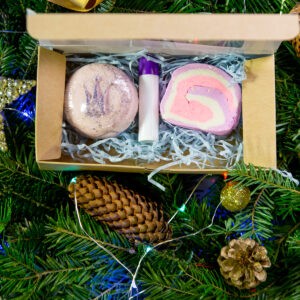 Піна для ванни з ароматом ожина- ваніль і бомба з ароматом чорна амбра і лаванда.
